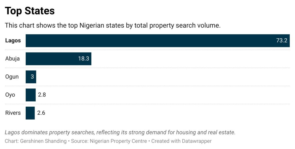 Every year, millions of Nigerians, both at home and abroad search online for their next real estate opportunity. But where exactly are they looking? According to the latest Nigeria Property Search Trends 2025, Lagos leads the pack with a commanding 73.2% of all property-related searches. Abuja follows at 18.3%, while Ogun, Oyo, and Rivers account […]